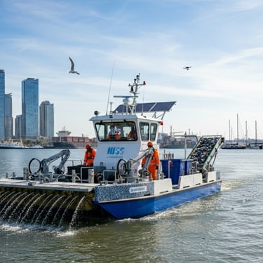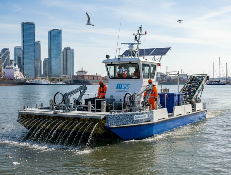 Collection of floating debris and plastics from marine waters to protect marine life and reduce shoreline pollution.