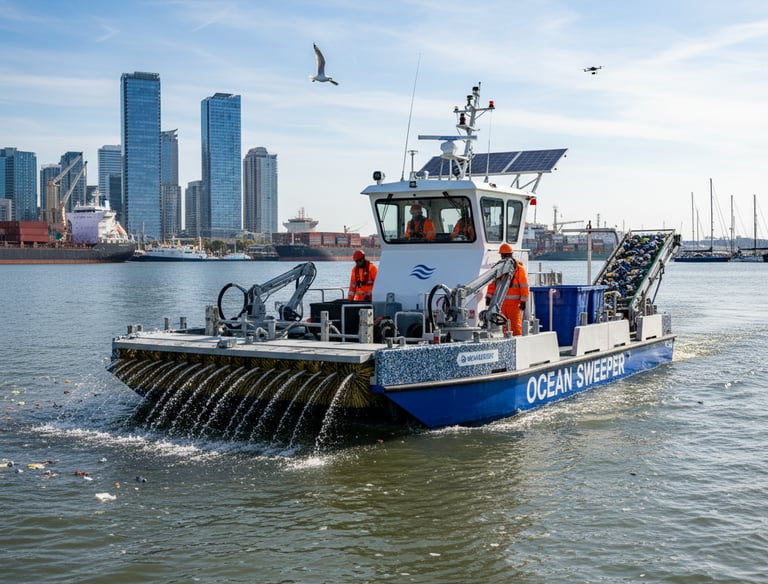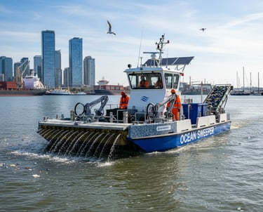 Collection of floating debris and plastics from marine waters to protect marine life and reduce shoreline pollution.