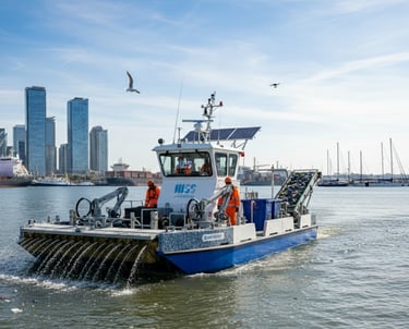 نوفر خدمات تنظيف المياه من النفايات العائمة باستخدام معدات بحرية متطورة وصديقة للبيئة